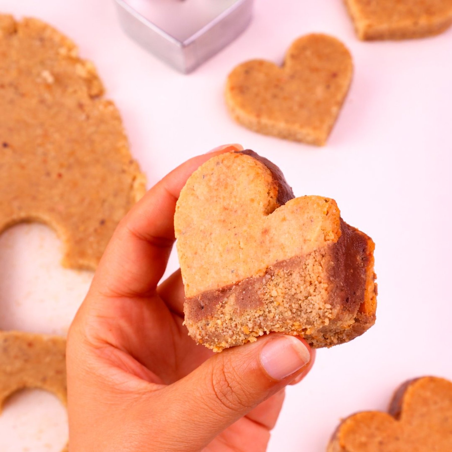 Ingredientes: Cookie de amêndoas com castanha de caju (farinha de amêndoas, farinha de castanha de caju, adoçante natural [polidextrose, goma acácia, dióxido de silício [antiumectante], aroma natural de baunilha, edulcorantes naturais [glicosídeos de esteviol e taumatina]], aroma de baunilha, água), brigadeiro de avelã (avelã, castanha de caju, adoçante natural [polidextrose, goma acácia, dióxido de silício [antiumectante], aroma natural de baunilha, edulcorantes naturais [glicosídeos de esteviol e taumatina]], cacau em pó, óleo de coco, chocolate ao leite de coco [manteiga de cacau, adoçante natural (polidextrose, goma acácia, dióxido de silício [antiumectante], baunilha natural em pó, edulcorantes naturais [glicosídeos de esteviol e taumatina]], leite de coco em pó, massa de cacau, polidextrose, lecitina de girassol, extrato natural de baunilha]), chocolate ao leite de coco (manteiga de cacau, adoçante natural [polidextrose, goma acácia, dióxido de silício [antiumectante], aroma natural de baunilha, edulcorantes naturais [glicosídeos de esteviol e taumatina]], leite de coco em pó, massa de cacau, polidextrose, lecitina de girassol, extrato natural de baunilha).